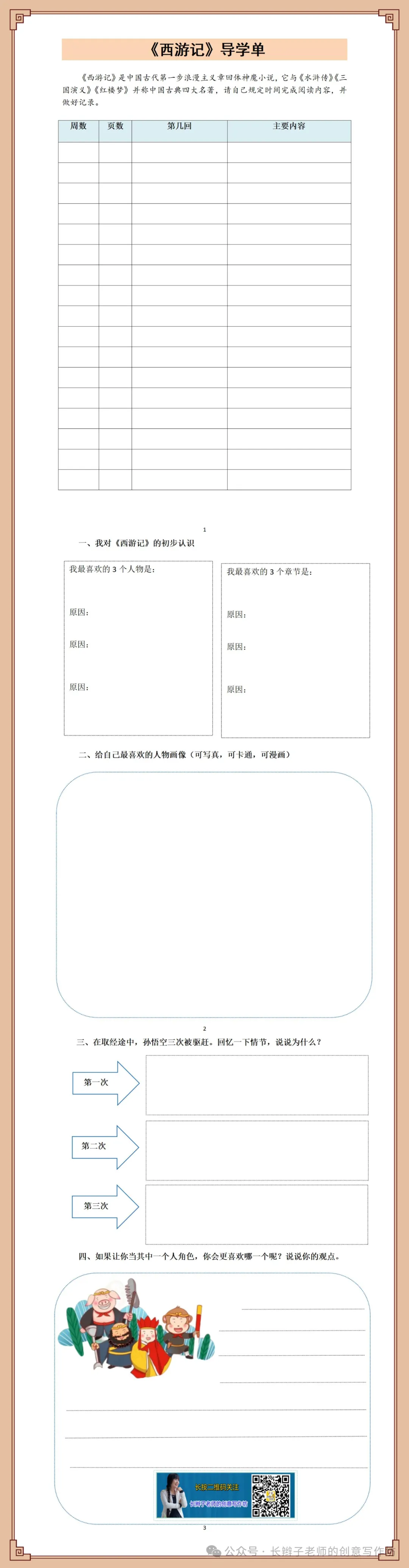 需要“《西游记》导读卡”,请关注微信公众号“长辫子老师的创意写作坊”,在首页对话框写——西游记导读卡,便会自动弹出提取链接。也可以直接扫描(或长按)下图二维码,直接获取。