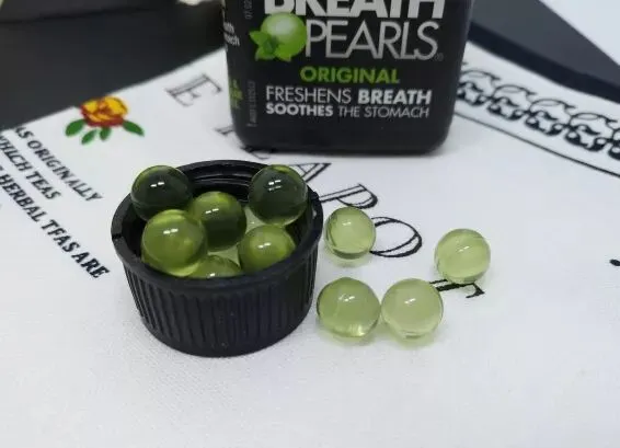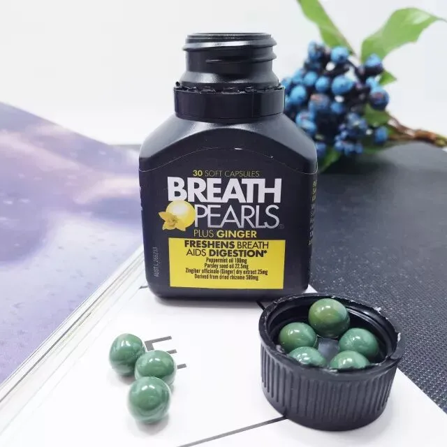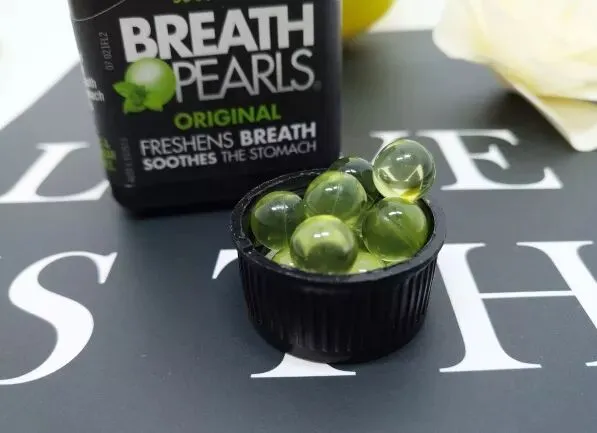 Breath Pearl 口气珠,采用纯天然材质,其中包括:丰富的薄荷提取物(排除肠胃气体、缓解肠胃不适)与西芹籽油(具有强吸附性,是保持口腔口气清新的法宝,被称为天然的除臭师)提炼而成,有了这样的组合,即可以排除肠胃里积攒滞留的气体,而这些气体正是口臭的根源所在。。。