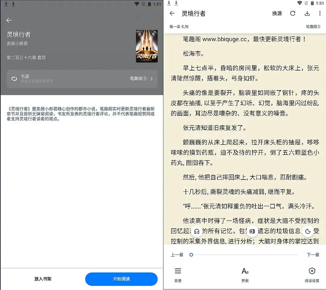 如果说某个章节无法观看,我们可以在线更换书源