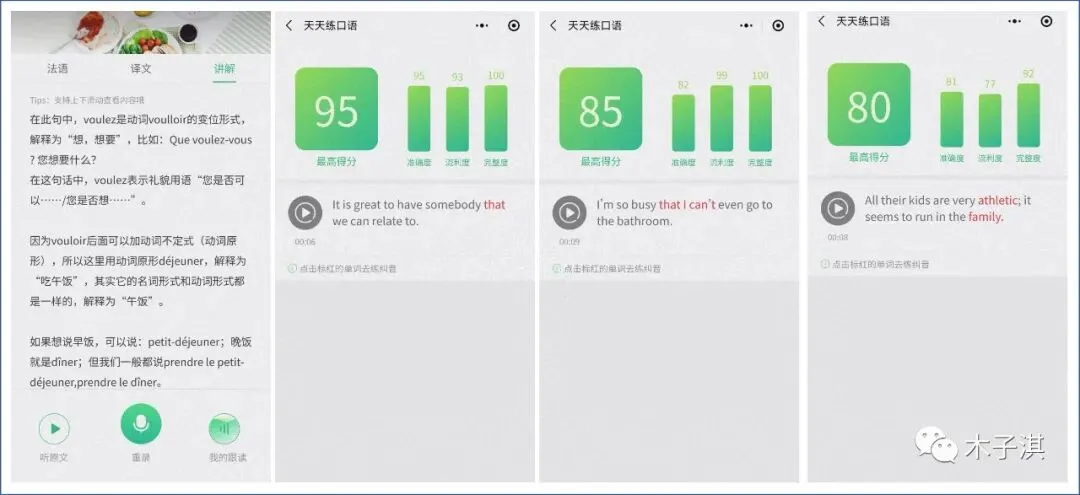 它完全免费,简单好用,支持的功能包括:英语口语练习、日语口语练习、韩语口语练习、法语口语练习。