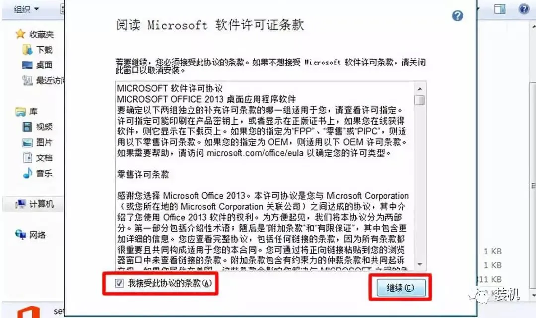 4、接下来,选择我接受此协议的条款,点击继续。