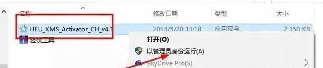 9、接下来,在解压的文件夹中找到office 2013 专业增强版 ,鼠标右击HEU_KMS_Activator_CH_v4.1选择以管理员的身份运行。