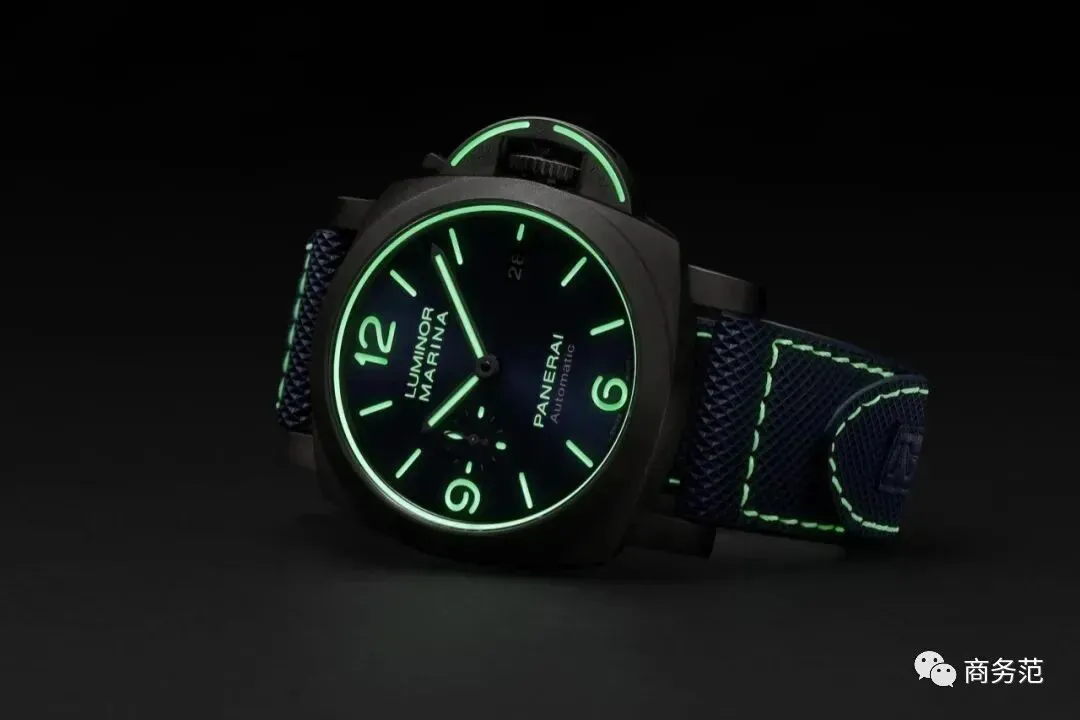 喜欢风格酷炫一些的,可以选择这款PAM01117,表盘上的标志、表盘外圈、表冠、表冠护桥、锁杆与表带缝线均涂覆了先进的夜光物料,大大提升了辨识度,直接金属镭射烧结(DMLS)技术制成的钛金属结构,让这只腕表自重只有100克,相当轻盈。