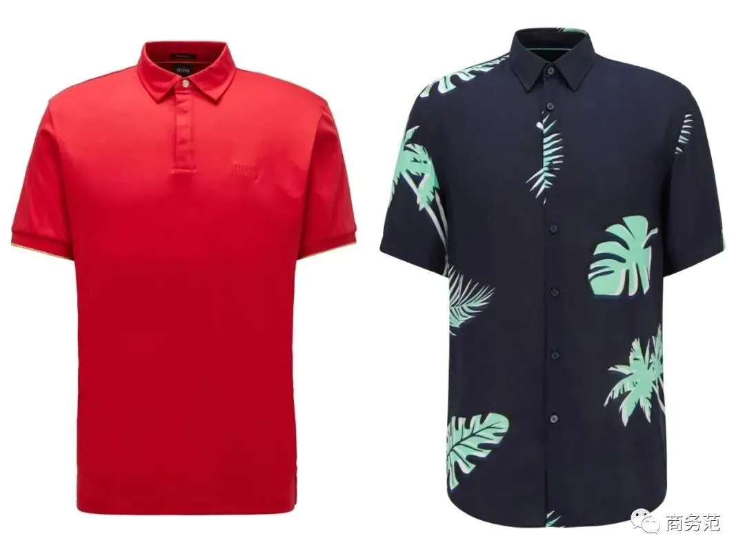在商务男装之外,Hugo Boss还推荐了他家的红色POLO和棕榈叶印花衬衫,一个高调亮眼,一个度假休闲。