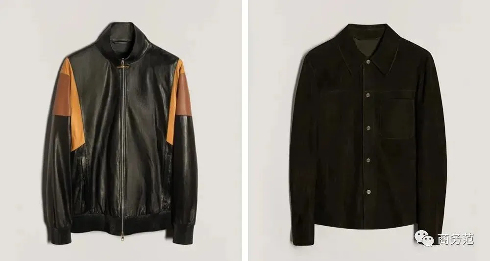 这两款皮质夹克就很不错,都是可以穿很多年的款式,第一款运动夹克采用100%柔软小牛皮,质感超棒,整体配色是烟草色调拼接,非常高级;另一款是表面磨砂小牛皮材质的,衬衫式,更休闲百搭。