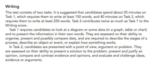 分小、大作文,小作文150词/20分钟,大作文250词/40分钟;大作文15类题型,聚焦社会、教育、环境、科技等高频话题,积累对应素材表达即可。