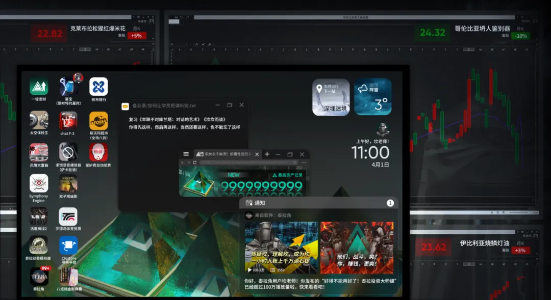 新建文档:下午要投的广告词 – 记事本 新建文档:下午要投的广告词 – 记事本 普通人等待机遇,成功者创造机遇。 没有人生来就是成功者,也没有人学不会如何成功。 你需要的不是神明的眷顾,你需要的只是良师的指引。 坎坎诺特金牌教育,《泰拉投资大师课》,你最好的成功导师。