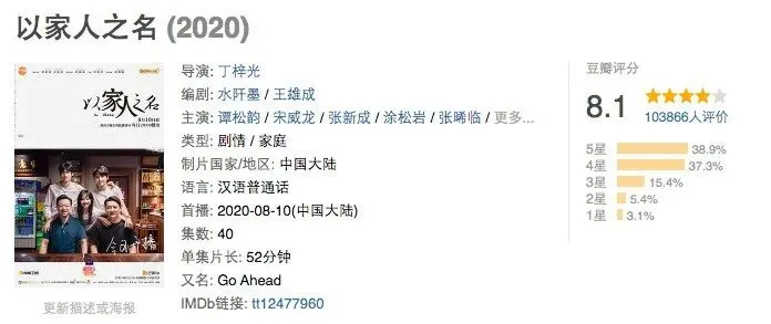 对!说的就是最近住在热搜上的这部——《以家人之名》,10w+豆瓣网友打出8.1高分的神级国剧。