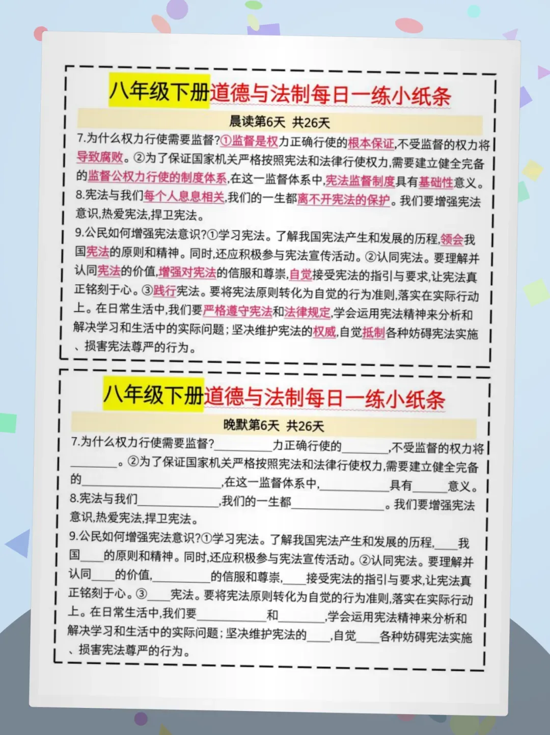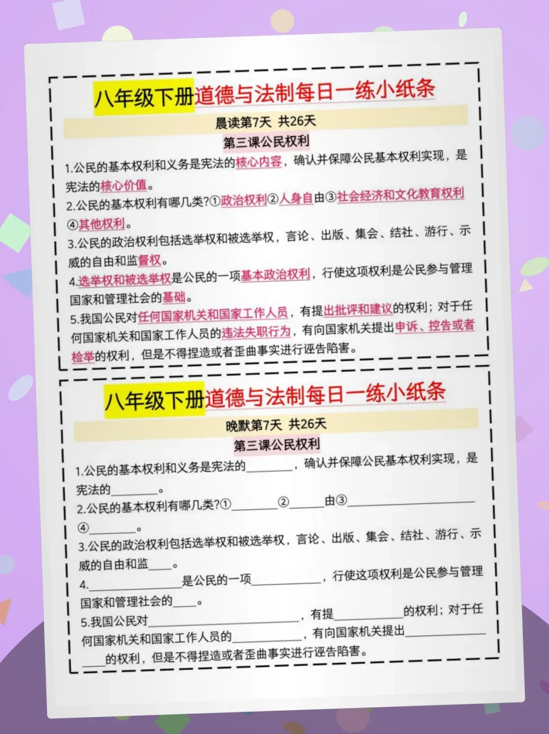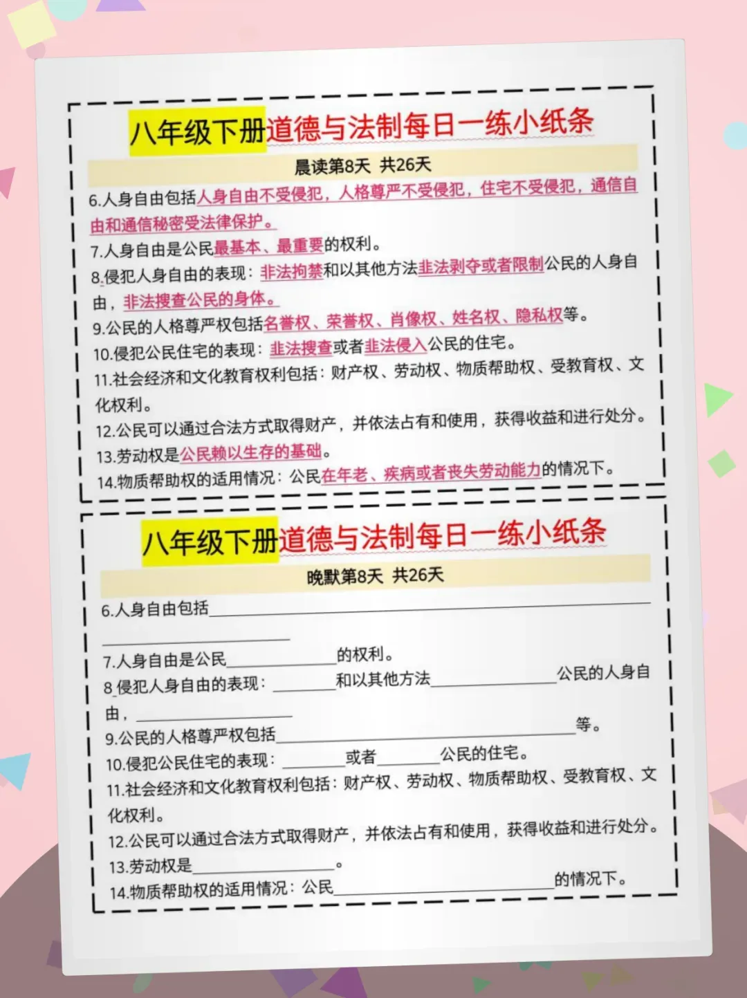 【免费获取】八下道法晨读晚默26天pdf【可下载打印】
