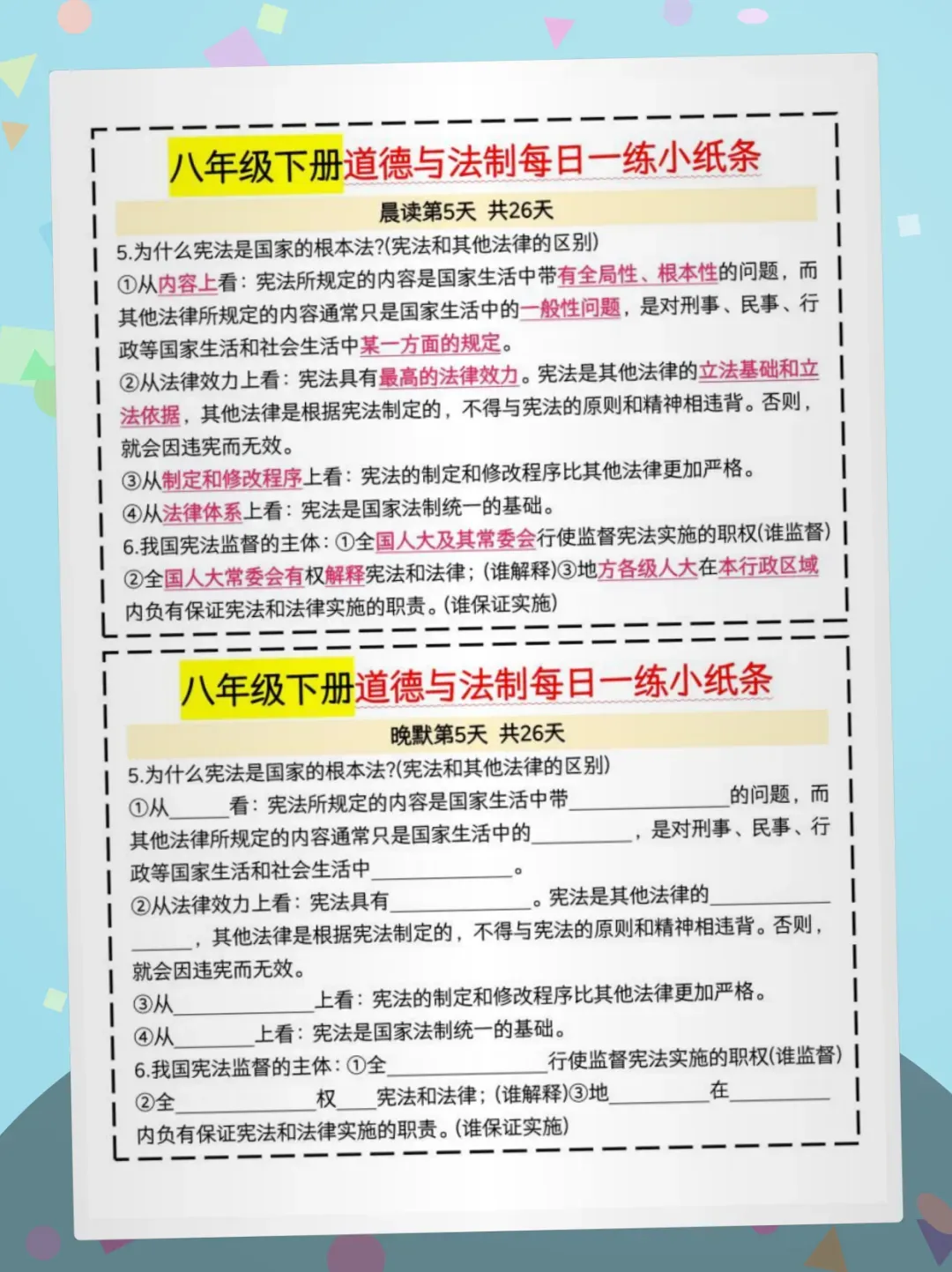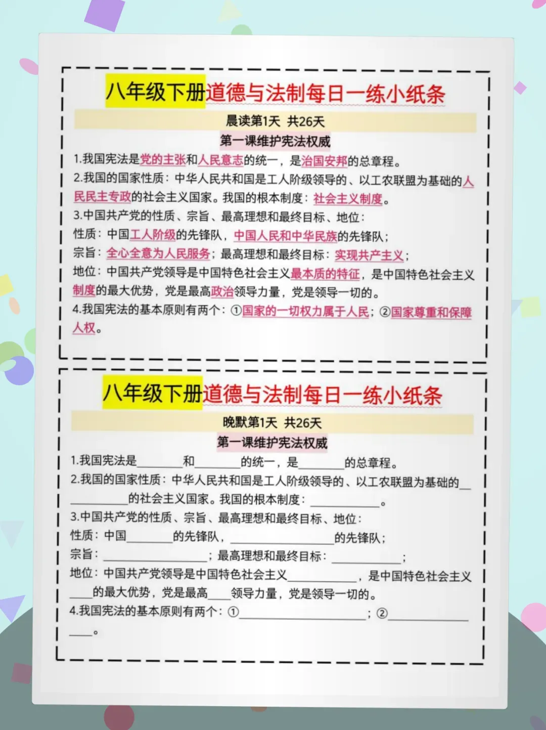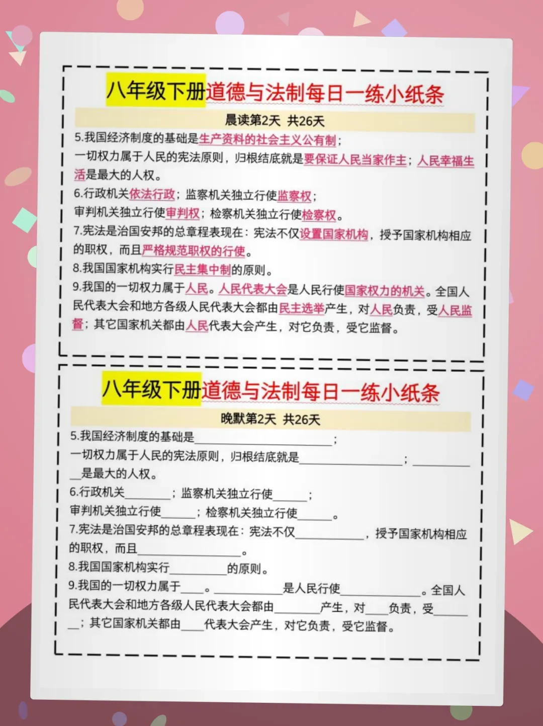 【免费获取】八下道法晨读晚默26天pdf【可下载打印】