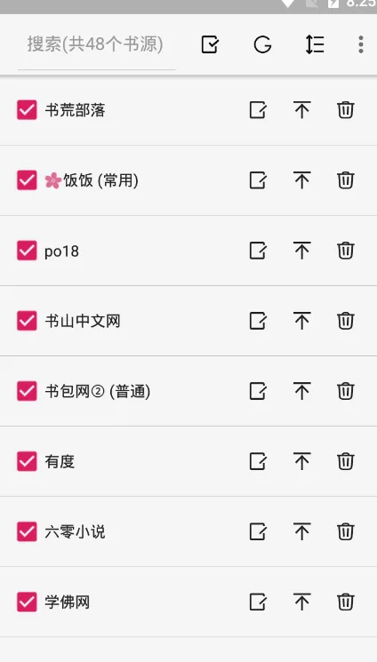 然后把你不想要的书源去掉,然后点击返回就可以了