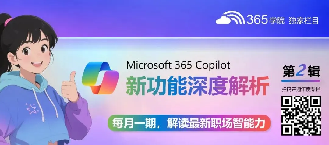 “365学院”是微软产品组推荐学习中心,旨在将优质、全面的学习资源精心分享给每位职场人。其中涵盖 Microsoft 365 办公平台应用、Microsoft Power Platform 低代码开发技术、Microsoft 安全与合规服务实施方法,以及前沿的 AI 技术能力场景等领域。