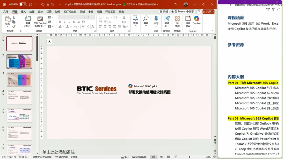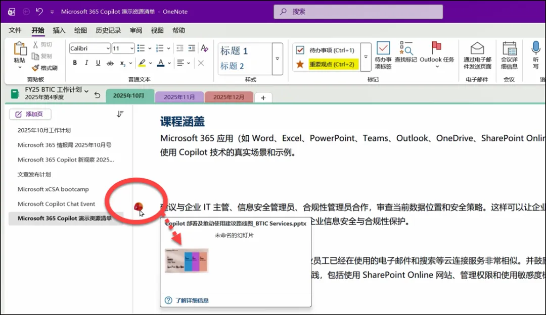现在,可以一边阅读文档,一边在 OneNote 页面中记录心得体会。关键的,每条笔记内容,都将与 PowerPoint 演示文档中的当前幻灯片自动关联。
