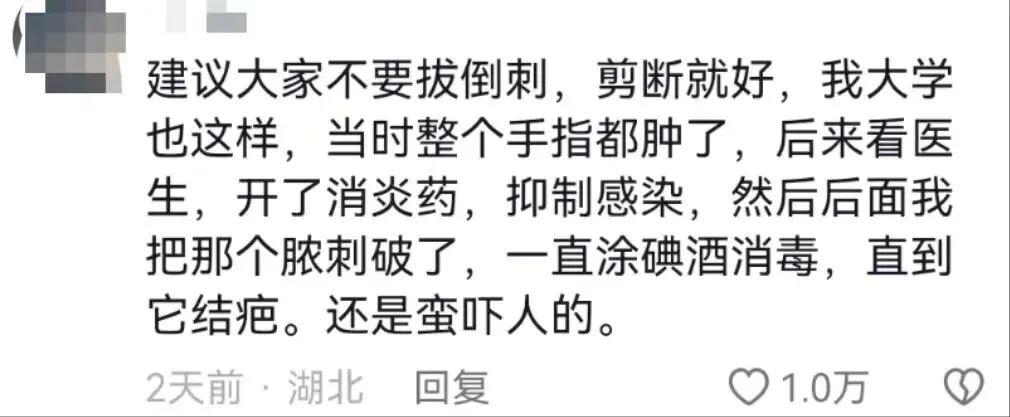 倒刺别随便拔、痘痘别随便挤、脚指甲长肉里了也别随便剪。