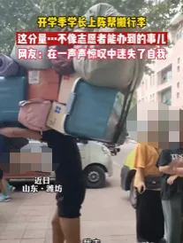 8月23日,云南,新学期开学时,一新生用扁担挑行李引发网友围观。