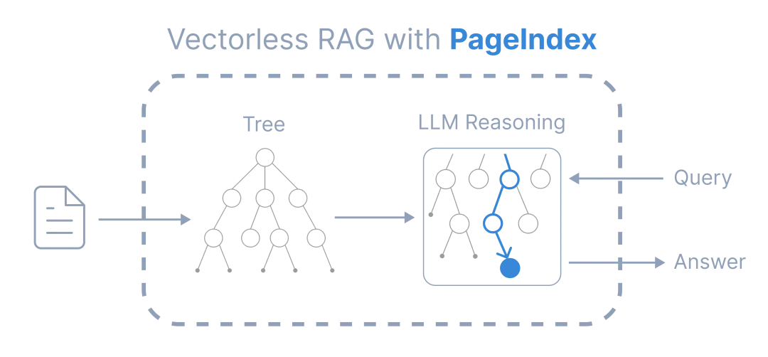 简单来说,PageIndex是VectifyAI搞的一个开源项目,核心思路就是:不用向量数据库,不用传统分块,用LLM推理来检索文档。