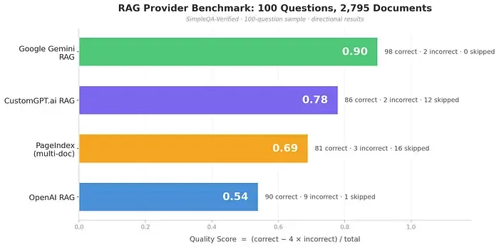 PageIndex在回答时的准确率确实高(96.4%),但问题是它回答的问题太少了,很多时候选择保持沉默。这个4倍不正确答案惩罚的评分机制对保守系统有利,但也暴露了它在大规模场景下的局限。
