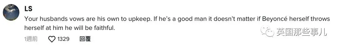 “你丈夫的誓言需要他自己来维护。如果他是一个好男人,即使碧昂斯向他投怀送抱也无所谓,他会非常忠诚。”