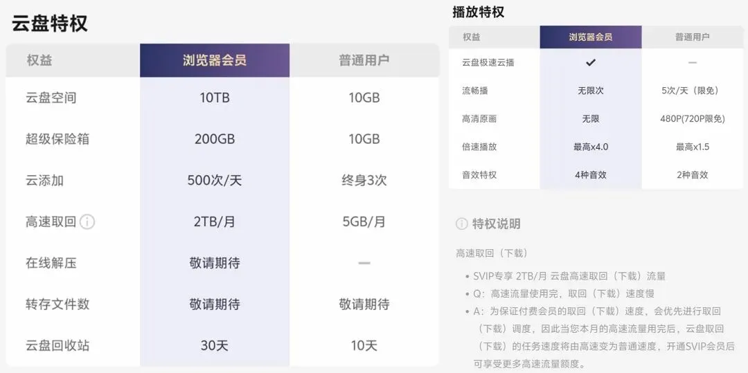 可能有看片大户的小伙伴觉得这容量太小,其实迅雷浏览器还提供云盘SVIP服务。