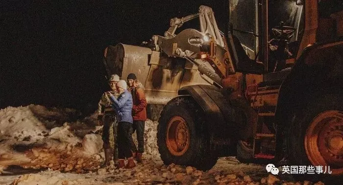 又过了5分钟,Stian想出一个好主意,决定用推土机给他们开道,在结冰的路面上划出痕迹用来防滑,