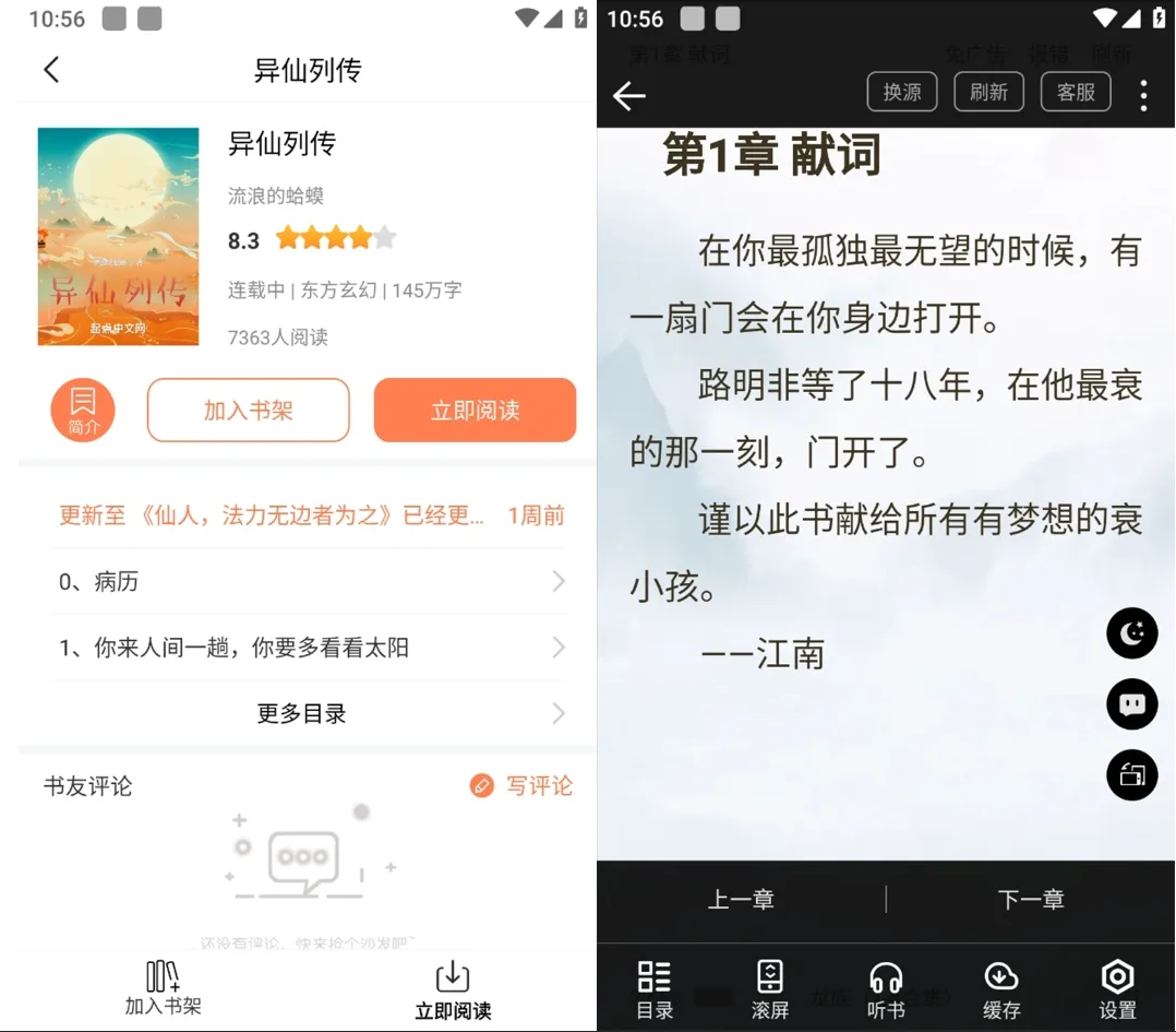 2、更重要的是,整个阅读过程之中没有广告,阅读体验非常出色