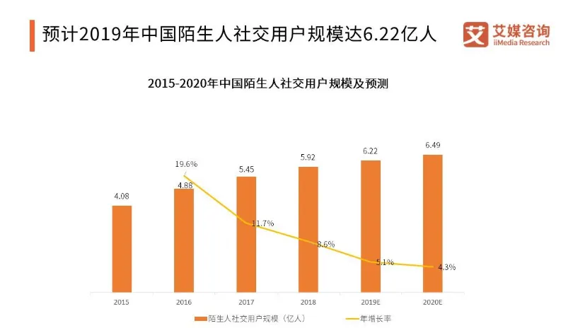 根据艾媒咨询的数据显示,2019年国内陌生人社交的用户规模高达6.22亿人,并且逐年上升。这也透露着在匿名社交这块试验田上,成功的机遇会很大。