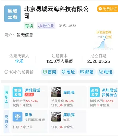 工商资料显示,来遇App注册公司为北京易城云海科技有限公司,成立于2020年5月25日,注册资本为1250万元,法定代表人为李乐,经营范围包括互联网文化活动、互联网信息服务、广播电视节目制作等。