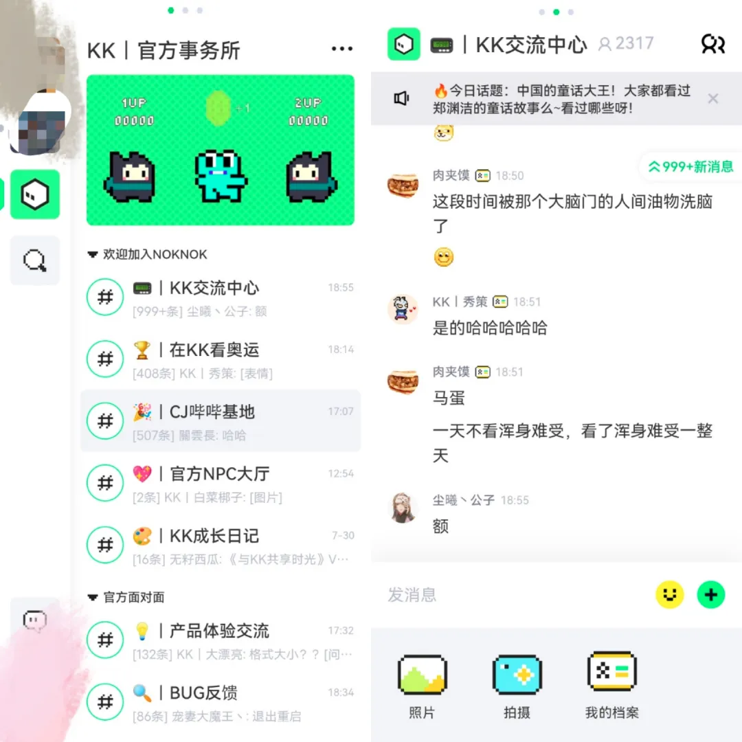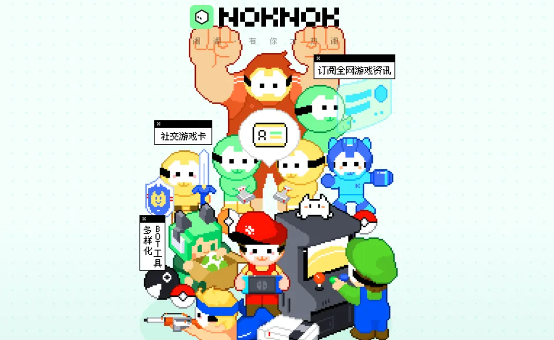 封面来源 | IC photo腾讯欲再造一座社交大山,打造一款游戏界的“微信”。 今年4月,腾讯平台与内容事业群(PCG)宣布组织架构和人事调整,互动娱乐事业群(IEG)天美工作室群总裁姚晓光,兼任平台与内容事业群(PCG)社交平台业务负责人。动作频频,似乎预示着游戏和社交会碰撞出火花。不出所料,腾讯将游戏和社交进行了完美融合,Tech星球独家获悉,PCG内测了一款名为“NokNok”的游戏社交产品,中文名为“闹闹社区”,整个主题偏像素风,内部称之为“KK”。这也是姚晓光掌舵PCG事业群3个多月后,带来了首个社交产品。据悉,“NokNok”定位是一个完全开放、自由免费、高质量交流的社区平台。按照官方公开的信息显示,NokNok在4月正式立项,随即开始搭建基础功能、消息发布、bot订阅、图片发送等功能,5月起,增加了私聊、群广播、视频发布、bot可视化配置等功能;6月,官方进一步结构化消息、群星标、消息态度等功能,7月进行灰度测试。Tech星球体验后发现,NokNok提倡的是群组聊天,将1对1的聊天模式进行了弱化。每个群组内可设置多个频道,满足不同时段和不同兴趣用户的需求。群聊内除了聊天外,还可以进行社交,用户可以发送自己的游戏档案,档案相当于个人名片,可以显示用户绑定Steam、NS等平台的数据。通过绑定这些平台的游戏数据,可以较为直观的看到对方游戏熟练度,以及是否存在相同爱好的游戏,便于精准交友。