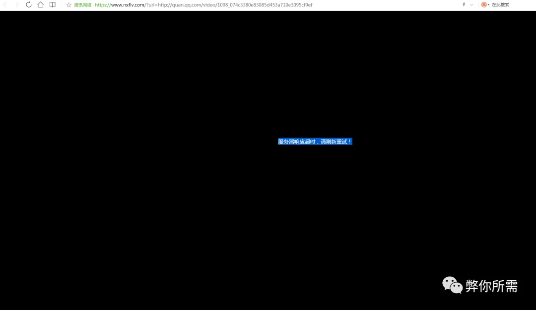 需要注意一点的是,在实际测试中,偶尔会出现转跳出来的页面中提示:加载失败或者服务器响应超时,请刷新重试!,如果出现以上情况,请参照下图中标注的位置,选中播放地址后鼠标右键,选择copy,然后打开浏览器把地址粘贴后打开即可正常播放。