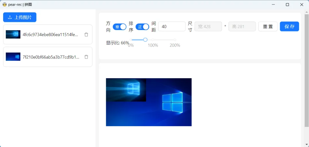 拼图就更好玩了,直接将多个不同的图片拼接到一起,支持横向和纵向拼接。
