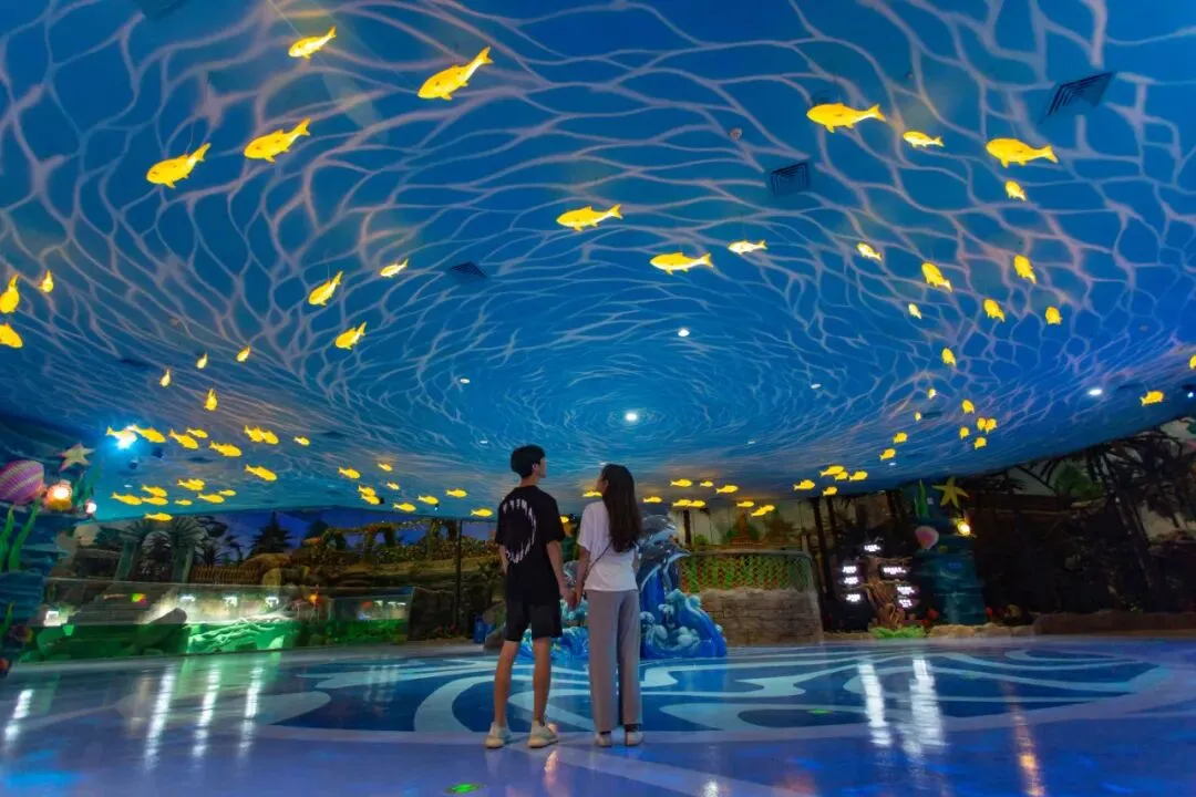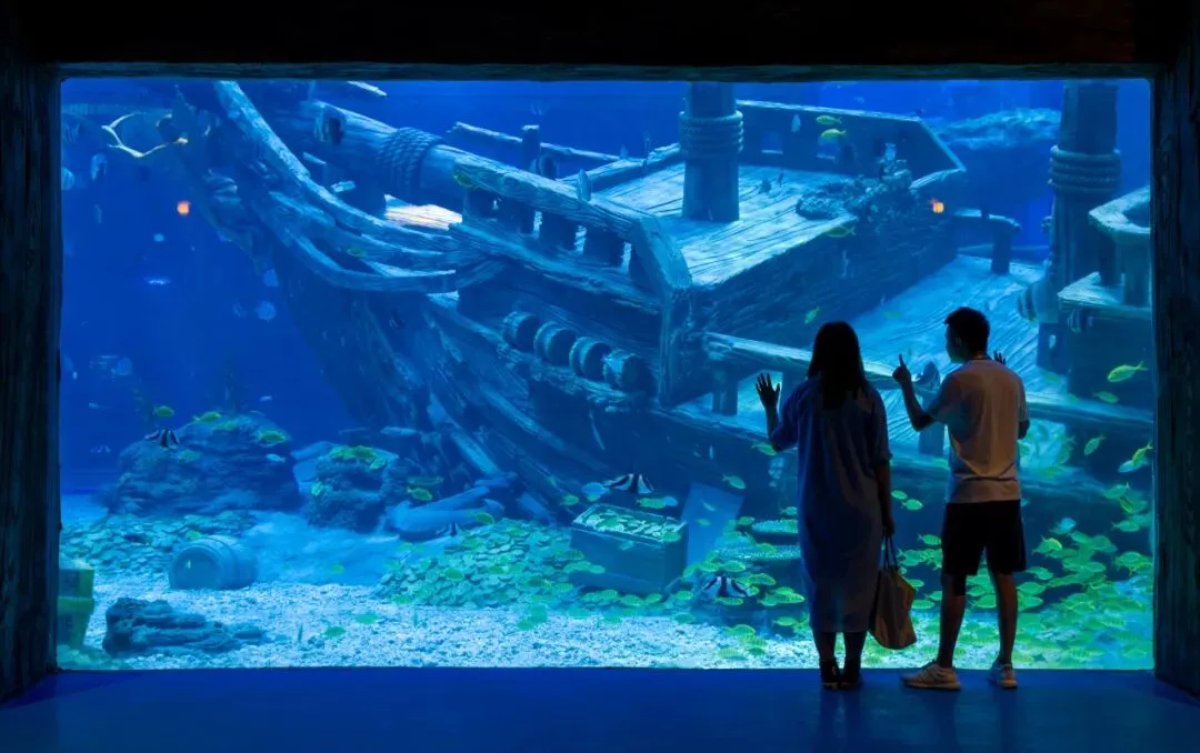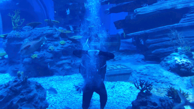 “妈妈,快看,好多鱼!”顺着这道雀跃的童稚声音走去,一面巨大的蓝色水幕出现在我的眼前。鱼儿在水中来回穿梭,活力满满精神奕奕,还会在潜水员面前捣蛋,确实好看~