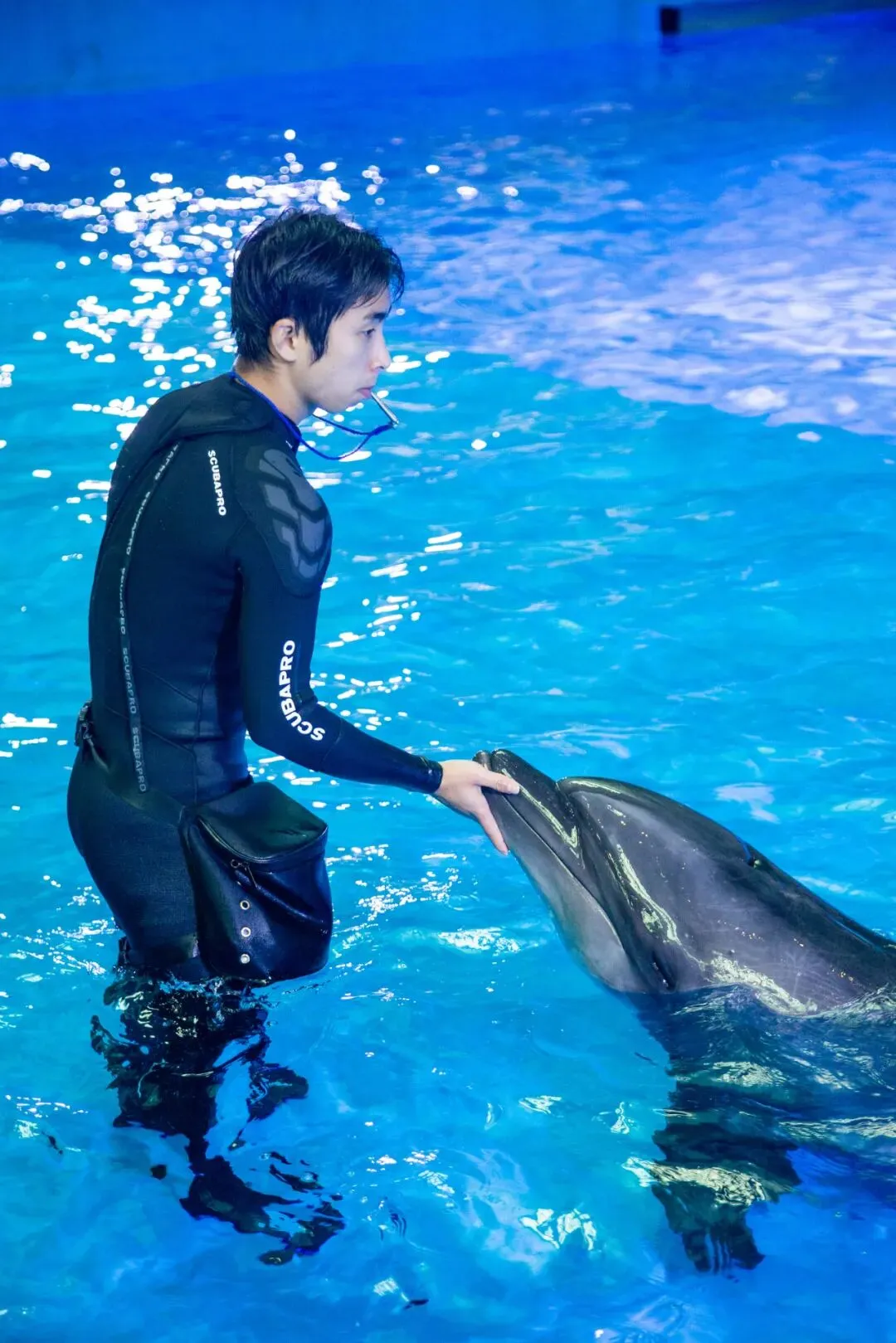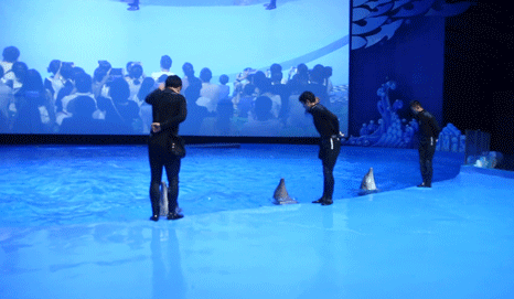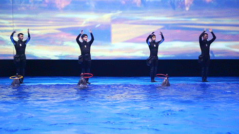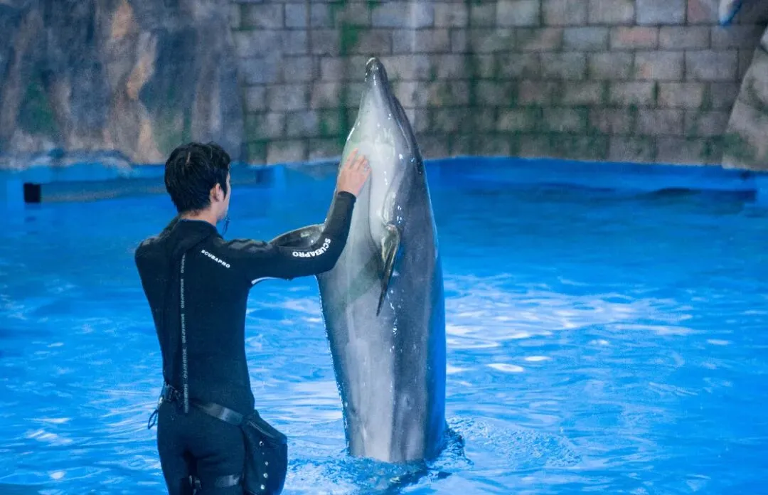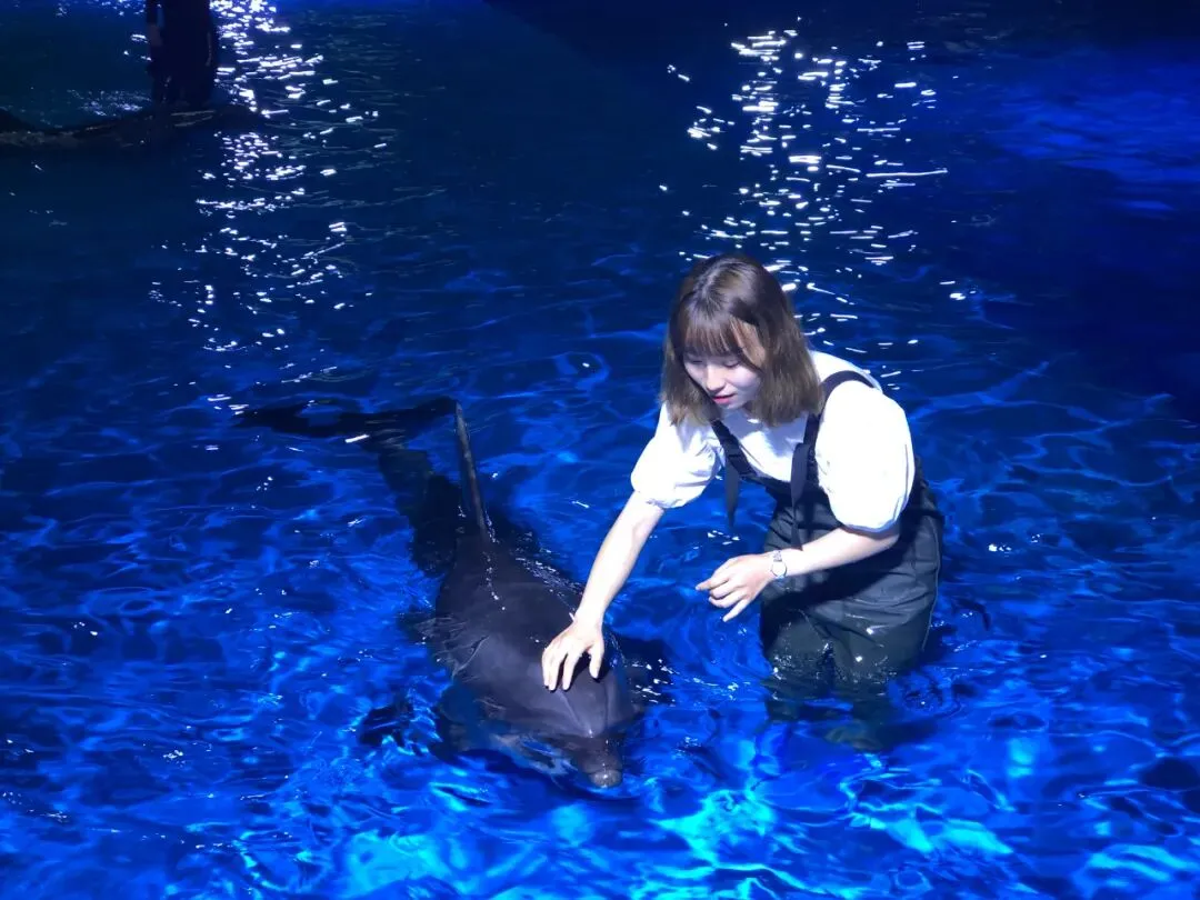 一群人围成一圈直呼“太可爱了吧!好萌啊”!他们在看什么?原来是海豚在表演!它们与饲养员的亲密互动,看着可真让人羡慕。它们灵活的身姿在水中划出优美的弧线,还有超级治愈的海豚音,听着就让人心静……