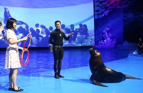 在这么多人面前,跟可爱过头的海狮互动,这是我以前从未挑战过的事!好久没有这种新奇的体验了~新的挑战似乎不坏嘛,未知的未来也没那么可怕,不是么?