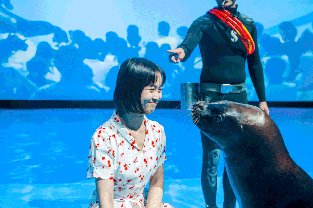 “看,这边!”憨憨的海狮扭动着圆滚滚的身子,进行着萌萌的表演,我的注意力完全被吸引。心里似乎有什么东西在发芽……鼓起勇气上前来了场互动。当海狮怯怯地跟我玩套圈,当它轻轻往我脸上呼一口热气,当它笨拙地挥舞着前肢跟观众告别,积极营业的海狮小可爱,可把我给萌化了……
