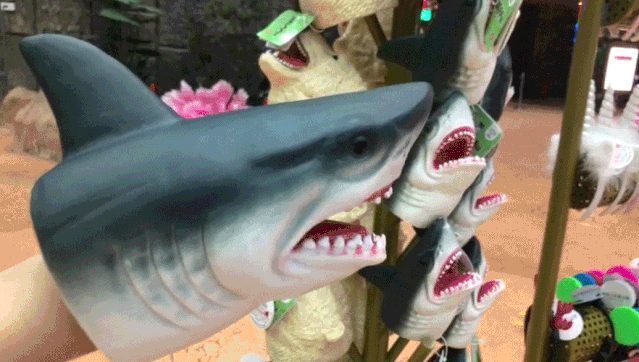 走着,走着,人越来越少,原来是海世界要闭馆了~~在出口卖纪念品的地方,我突然看到了小时候玩过的类似的小鲨鱼,忍不住把玩。售货员小姐姐告诉我,“你要是还想玩,渝乐小镇夜景很漂亮哦,可以去看看”!