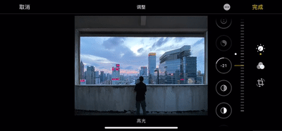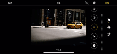iPhone调整色彩的选项不多,基本满足大众需求,简单快捷没有太复杂的功能。