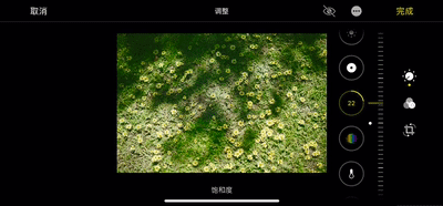 饱和度控制画面中色彩的浓度。也是少见的,iPhone在自家的编辑器中分有饱和度和自然饱和度2个选项。