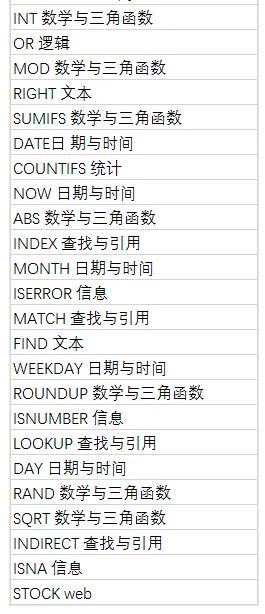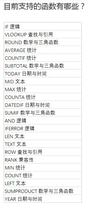 ▲腾讯文档支持的全部函数▲