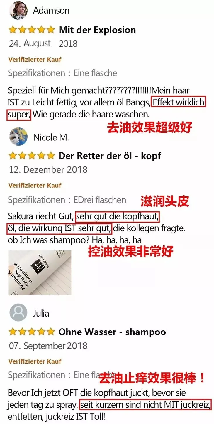 这款免水洗发喷雾推出市场后,迅速被德国人认可和疯抢,每月的销售量达到了300万瓶,收到无数好评。
