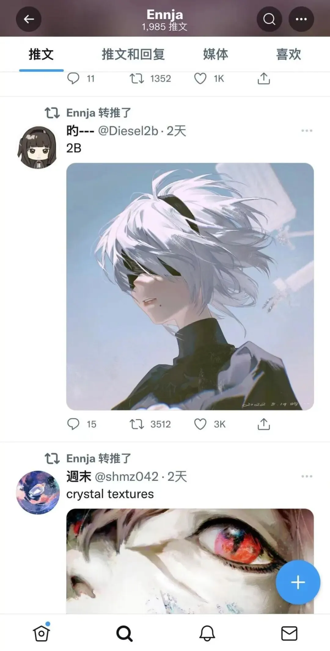 同时她也非常喜欢二次元动漫,转载了大量关于《宝可梦》、《全职猎人》等同人画师画的图。