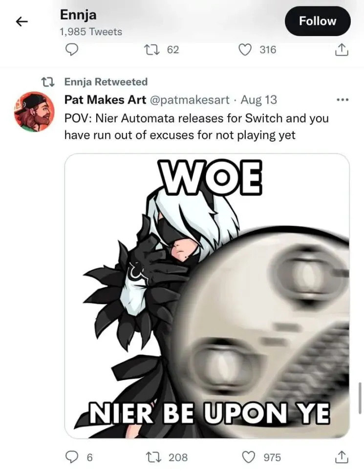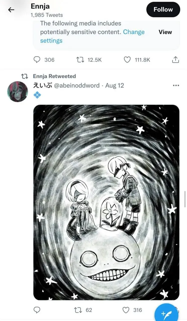 最后,她还透露《尼尔》的制作人横尾太郎曾在几年前关注了她,原因是她画了几张游戏女角色的同人图。