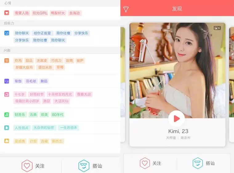 它的标签中心设有心情标签和超能力标签,会用语义分析技术建立需求-能力匹配模型,根据用户的心情,匹配具备解决他需求所需要的”超能力“的用户。比如说,如果一个用户的心情标签是“需要人陪”,系统就会给这个用户推荐有“陪你聊天””超能力“的人。