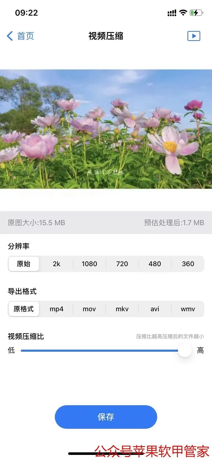 App Store 刚限免了一款超实用的APP 苹果软件管家 每个果粉都应该关注的一个公众号 关注苹果软件管家 你可以获取少有人知的苹果软件和技巧 今天看到一款原价45元的 图片视频压缩APP正在限免 我感觉不给大家分享一波 都对不起它这个价格 限免软件有时效 我就少说几句 大家抓紧时间下载 图片压缩专家 支持iPhone/iPad双端使用 这款软件的主要功能就是 图片压缩和视频压缩 虽然主页还显示了一个“文件压缩功能” 但是需要下载另一款APP 咱就当它不存在哈自动忽略 软件支持单张图片/多张图片批量压缩 有自定义压缩图片尺寸 和比例缩放两种压缩模式 能在图片清晰度不变的情况下压缩图片大小 还支持清除图片的exif信息 通过自定义尺寸 可以批量调整图片的尺寸大小 还能批量转换图片格式JPG/png 最后的这个视频压缩 效果也是很棒的 支持保留原分辨率 或者是调整为2K、1080、720等 还支持MP4、mov、mkv、avi、wmv 这几种视频格式的转换 以上就是该款APP的全部功能了 大家也已通过它来批量压缩手机照片 减小内存负担/方便传输 而且原价45元的软件 有这机会还不赶紧下载上吗? 软件下载 刚上架的iOS神器!趁还未收费赶紧下载 卧槽!竟然还真的有这种苹果神器 黑科技牛逼啊!偷偷给你朋友电脑装上~ 软件下载 有需要这款应用的果粉们 关注管家的公众号【苹果软件管家】 后台回复【压缩神器】直接下载