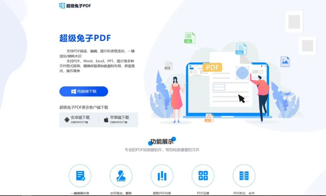 超级兔子PDF支持PDF阅读、编辑、图片和表格添加、一键添加/删除水印,还支持PDF、Word、Excel、PPT、图片等多种文件格式转换,能够做到精确保留原始数据和布局,界面简洁、操作简单!