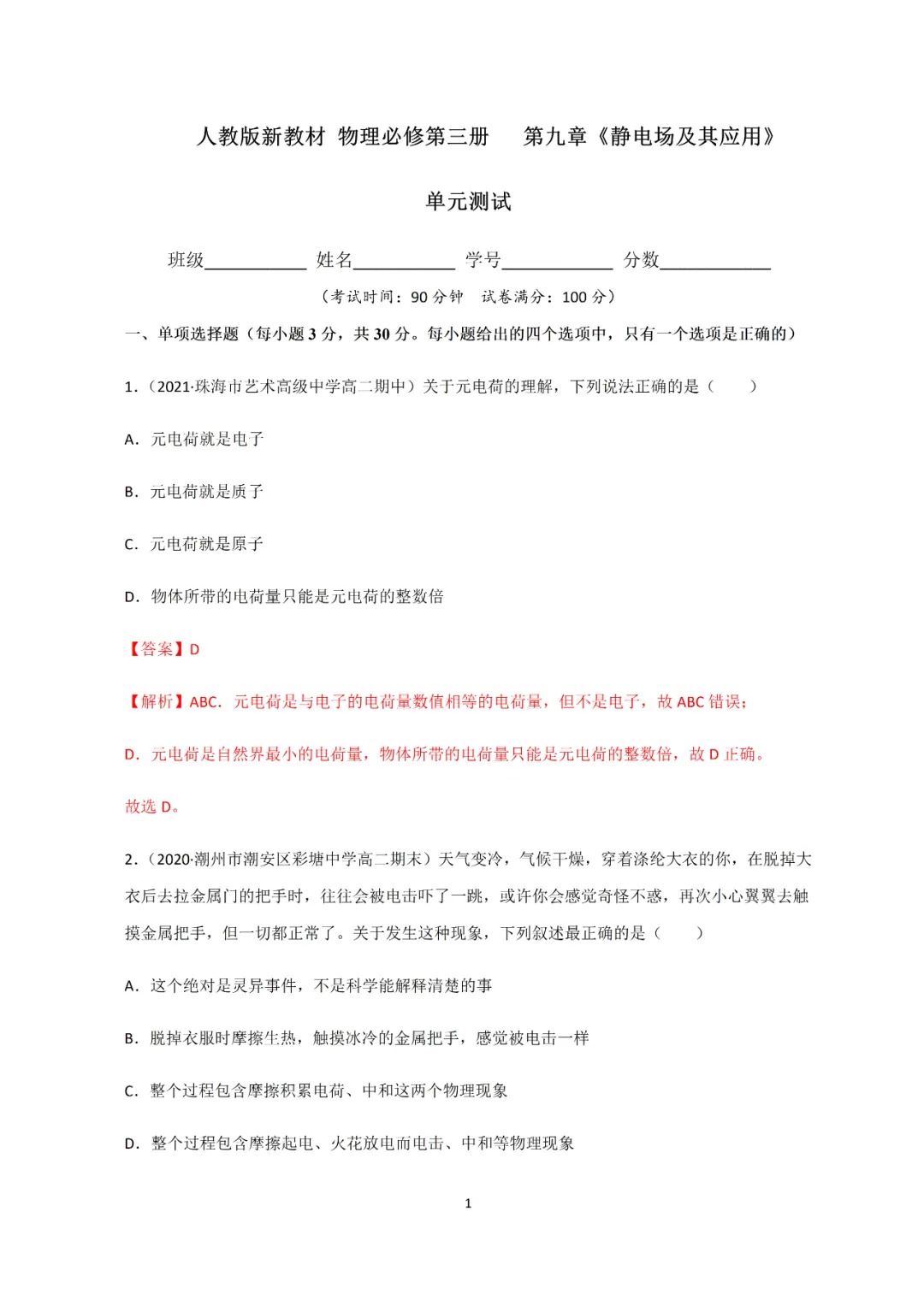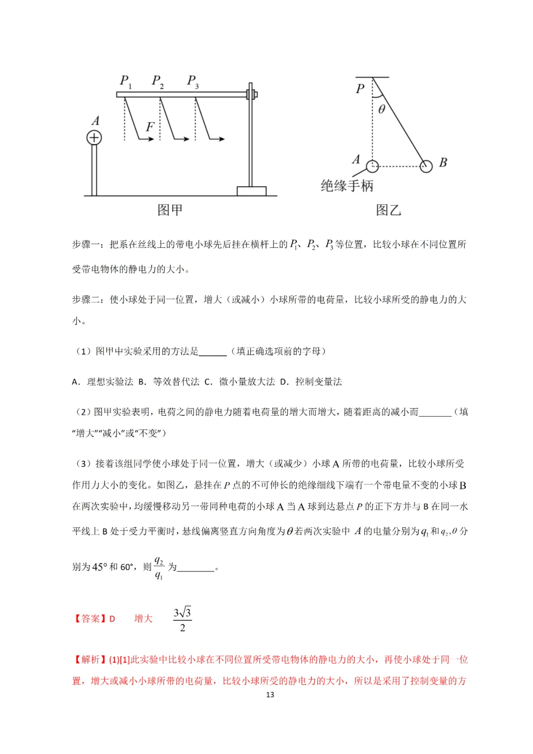 精品试题│ 静电场及其应用单元卷(Word下载)