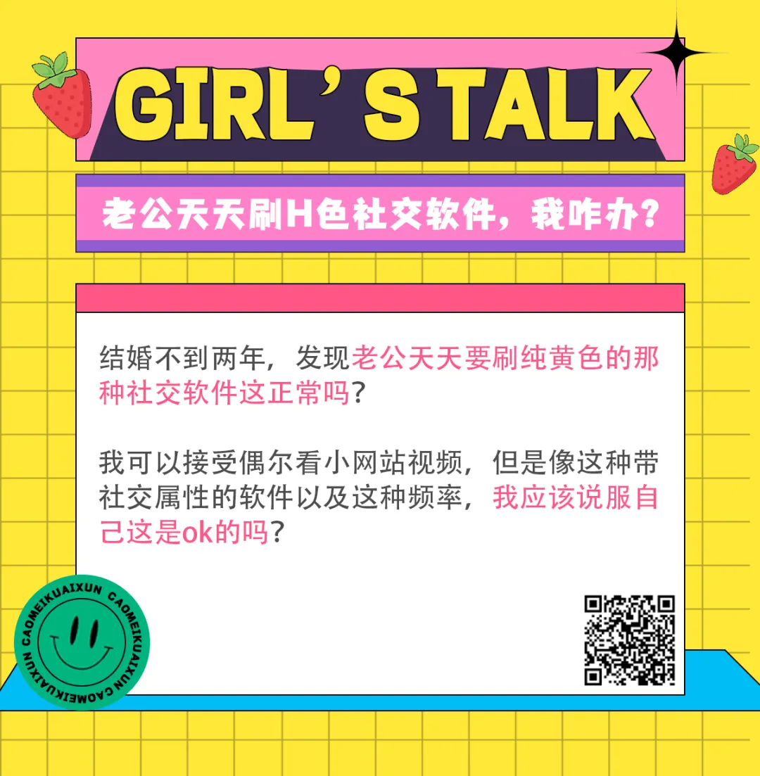 前段时间,我们的草莓信箱收到了一个女孩发来的求助:老公天天刷黄色社交软件,我很介意这种带社交属性的软件,我该怎么办?