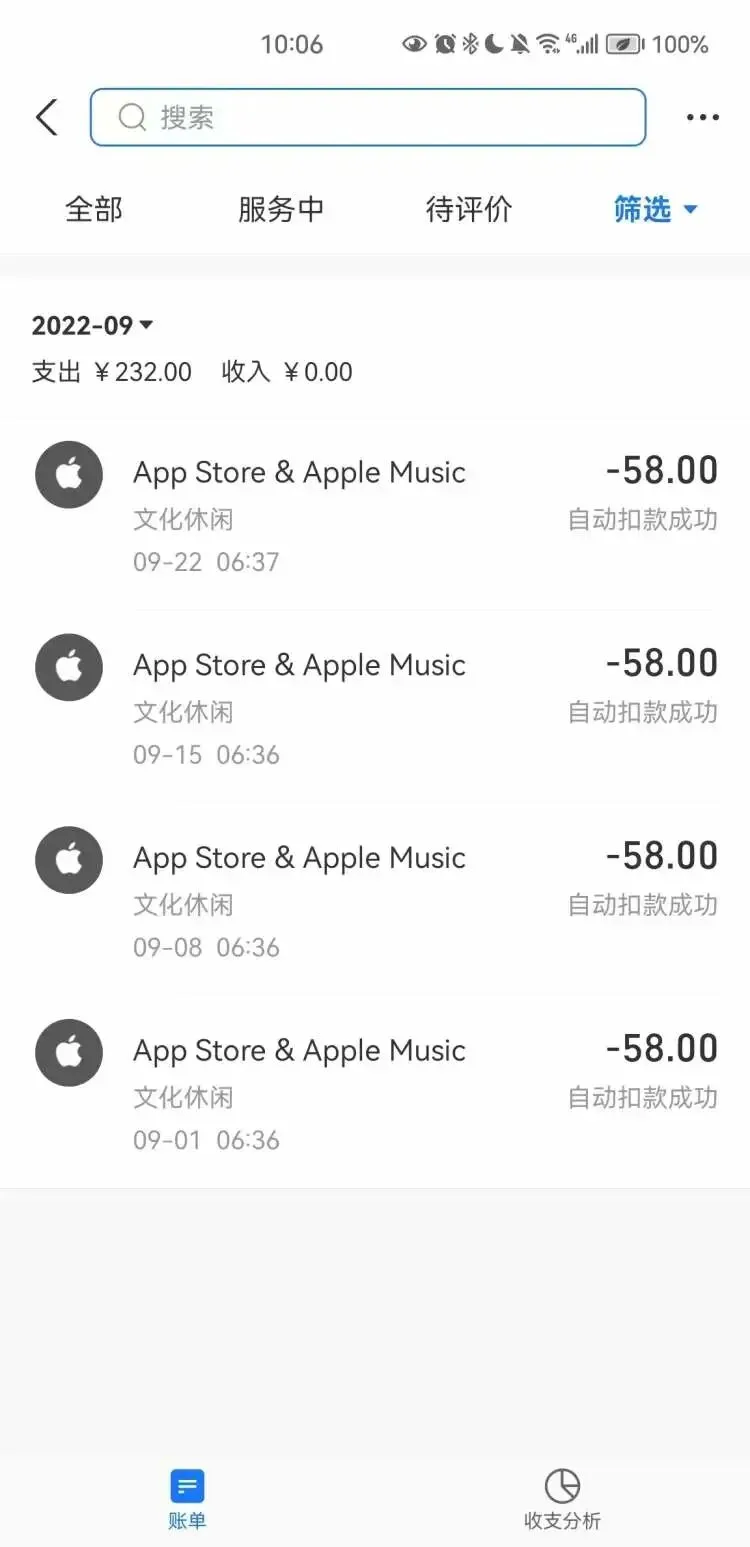 鲍女士说,扣费支付宝账号是她的,在她的手机上。苹果官方正式扣费之前,并没有短信提示,直接就扣钱了,每周58元,一共扣了28周,1624元。