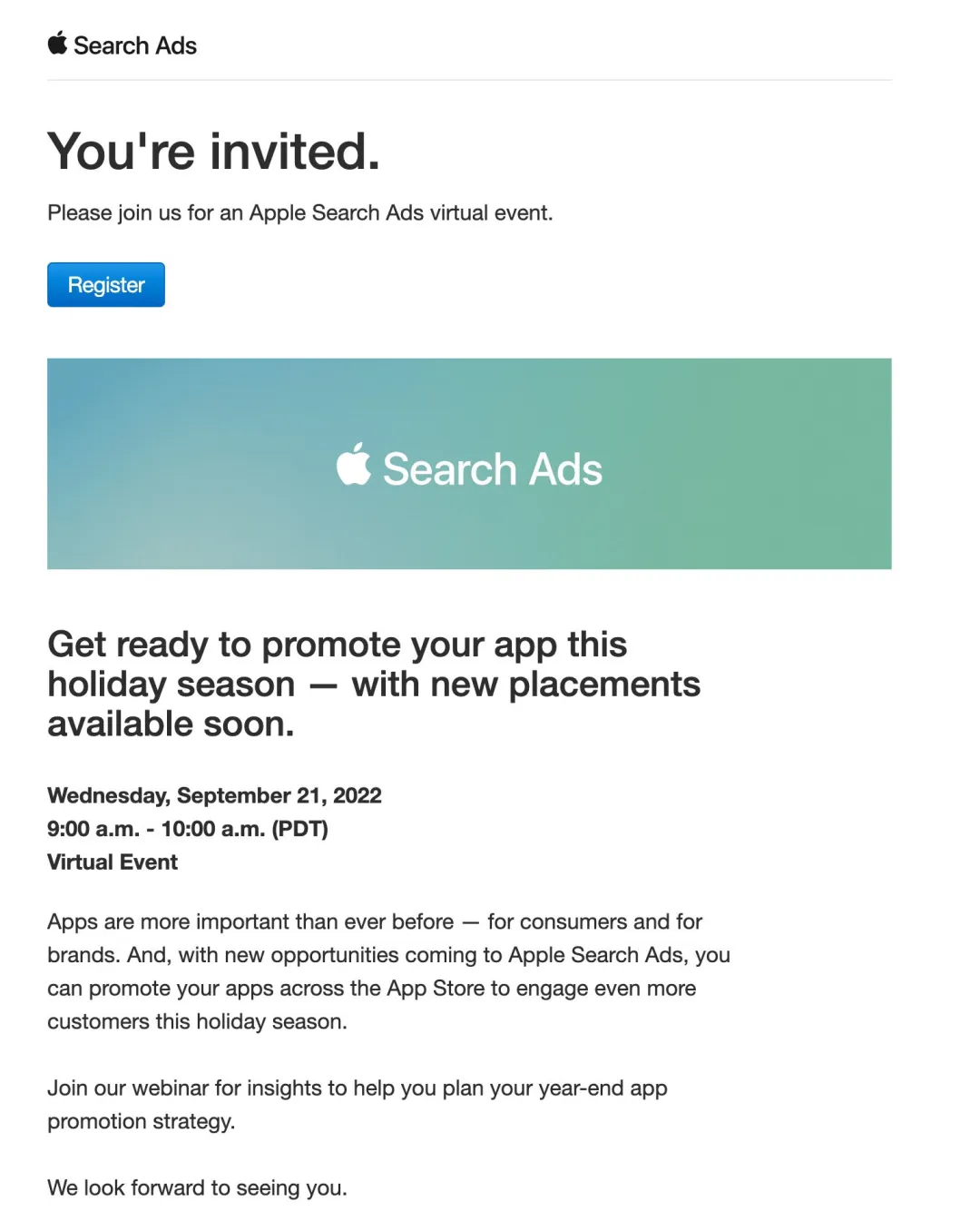现在已经有开发者收到了来自苹果搜索广告活动的邀请函,鼓励他们准备好在新的广告位上推广应用,说明今年年底前 App Store 中就会上线新的广告位。