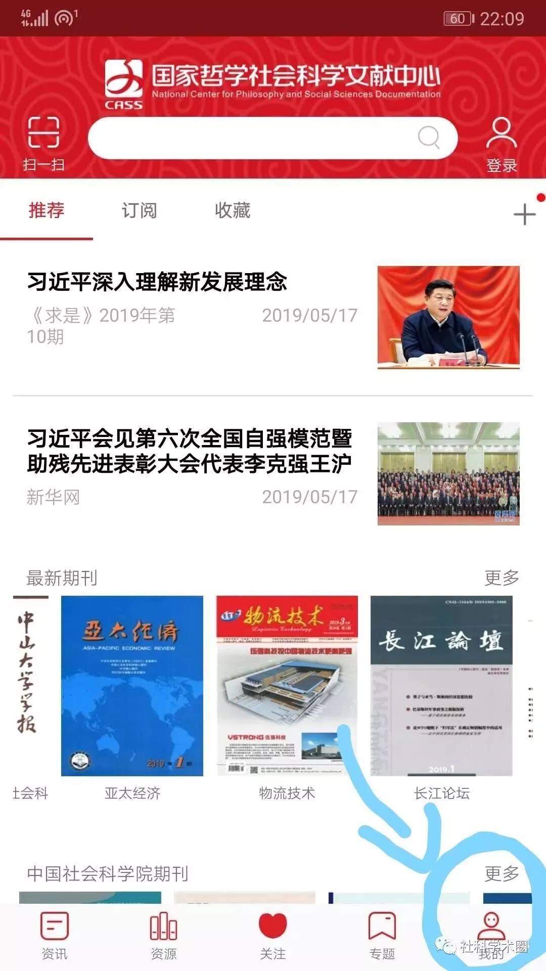 1.在应用市场检索软件名“国家哲学社会科学文献中心”下载安装软件。为了便利给读者,小圈在下方提供了该软件的下载二维码。