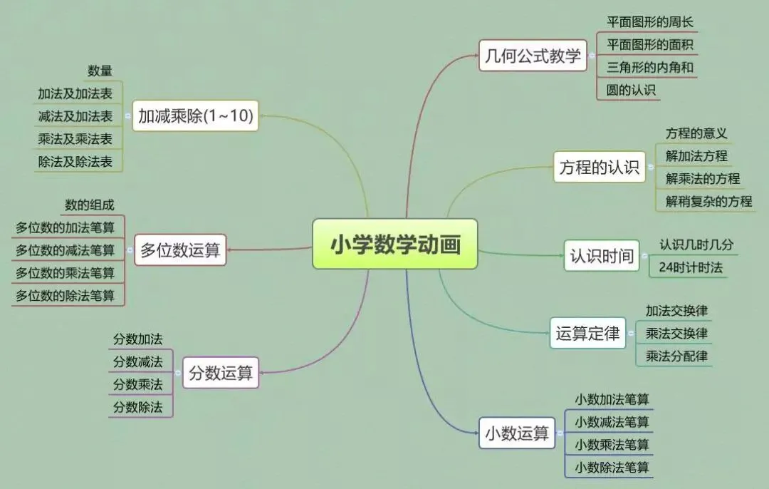 “小学数学动画“里的内容基本涵盖从小学一年级到六年级的绝大部分知识,可以供教师或学生长期的教学和自学辅助使用。